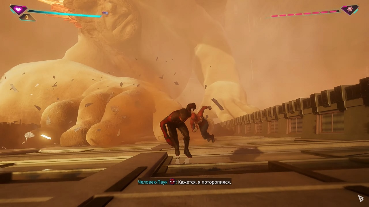 Хрупкую идиллию быстро нарушает новый злодей-Хантер, сам по себе культовый лидер и владелец высокотехнологичной компании chwk, интеллигентный мускулистый бородач, который ради спортивного интереса преследует и убивает самых опасных людей, самого Крейвена привезли в город. Нью-Йорк, в старой доброй традиции Marvel, полон ими. Внимание Паркера и Моралеса, конечно же, сосредоточено на агрессивном мужчине с массивным черепом за поясом, похищающем суперзлодеев из тюрьмы и планирующем что-то плохое. Забавно, что вся маркетинговая кампания игры была построена на присутствии в игре Венома, классического антигероя Marvel, судьба которого неразрывно связана с Паркером. Трейлеры, постеры и кадры, красивый персонаж в ограниченной серии — все говорило о том, что злой симбиот сыграет важную роль в сюжете. И это так! Но Вена впервые появляется ровно в середине игры, причем в относительно спокойном состоянии. Классический внешний вид (полный рот с острыми зубами, утробный рев и мускулистое слизистое тело) продержится у него до финала.