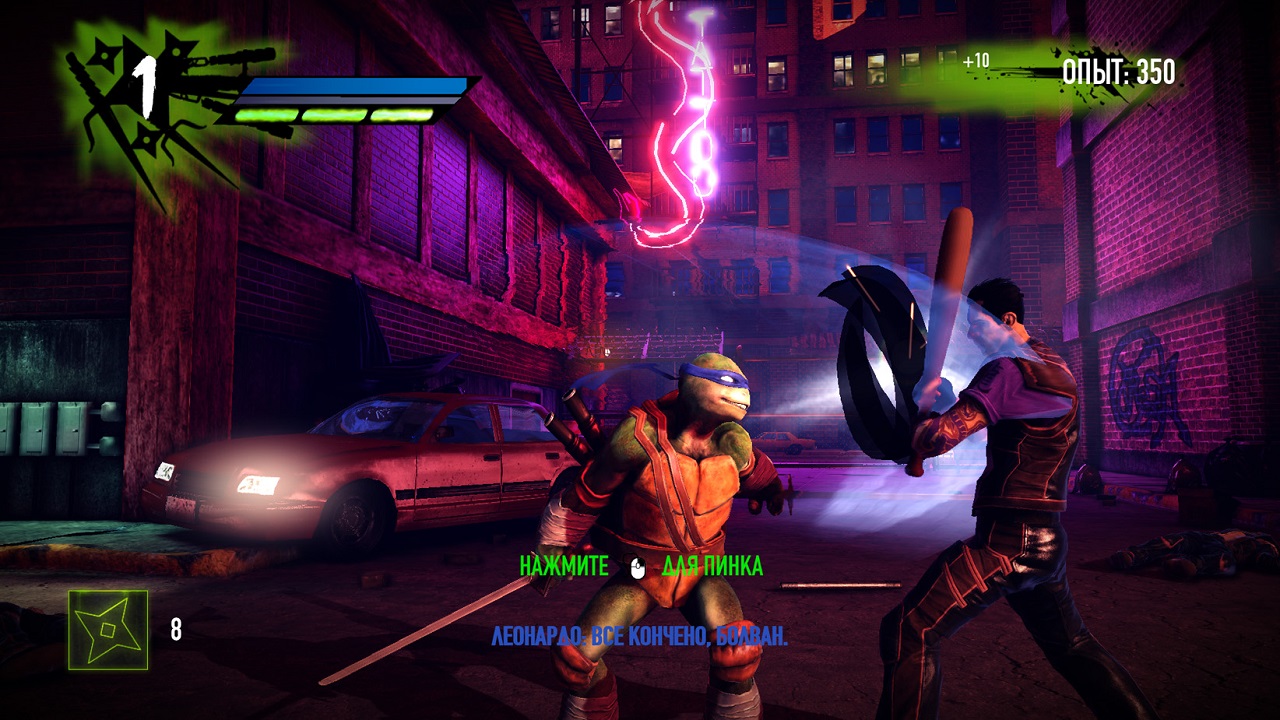 Если вы играете соло, без кооперативного режима, то с вами все так же будут сражаться три черепахи, их под контроль возьмет себе компьютер. К сожалению, их интеллект оставляет желать лучшего, если против рядовых противников еще можно воевать, то в бою против боссов они ужасно тупят. Не раз случится вам сражаться против сильного босса в одиночку, так как ваши соратники бросились прямо под самую сильную его атаку и умерли, оставив вас одного.
