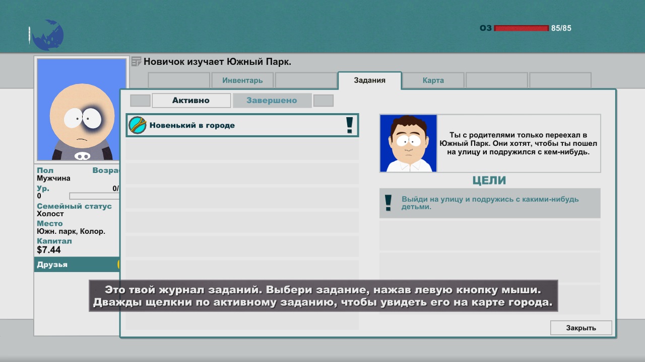 Итак, в самом начале South Park: The Stick of Truth, вам будет предложено создать своего собственного персонажа, при этом ваша фантазия, в этом плане – практически не ограничена, ограничено только число предметов, которые можно использовать для костюмизации своего героя. Но все же, с течением игры некоторые интересные предметы, которые вы потом сможете использовать для того, чтобы приукрасить самого себя – будет открывать. К примеру, в дальнейшем вам будет доступна борода, в которой поселились птенцы, а также самый настоящий эльфийский наряд. Сразу-же после создания своего персонажа вы окунетесь в здешние события. Ваша семейка недавно переехала в Южный Парк в поисках лучшей жизни, впрочем, они ее нашли, поскольку главу семьи – практически сразу приняли на высокооплачиваемую работу, а матери нашего персонажа удалось найти прекрасный дом, который по неизвестным причинам стоил достаточно мало. Ну а вам, как маленькому мальчику, впервые очутившемся в новом месте, предстоит познакомится со своими сверстниками и по крайней мере влиться в их коллектив. В скором времени нашему главному герою все-же удается познакомится с местным заводилой по имени Картман, который сразу-же вводит новичка в курс дела.