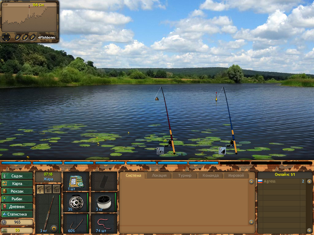 Это только не очевидные параметры, что касается наживок, величины крючка, и толщины лески даже упоминать не стоит, все параметры играют очень важную роль в ловле рыбы. В игре помимо обычного соперничества пользователей, есть еще и турниры, однако не спешите записываться туда, если вы новичок, то выиграть его не получится, ведь для этого нужна хорошая экипировка, а самое главное – опыт и знания.